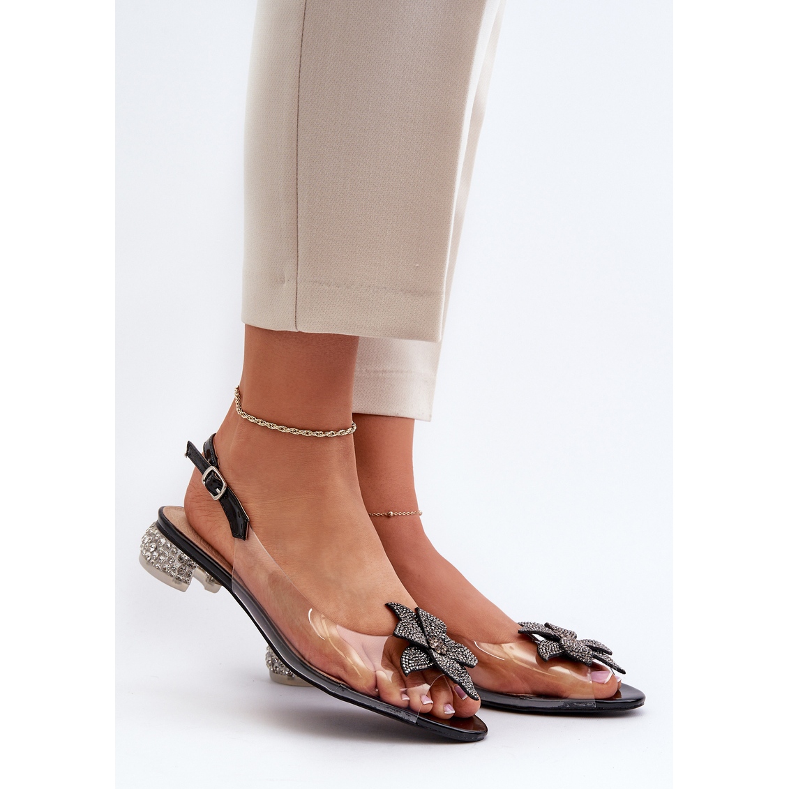 Details: S.Barski Transparente Sandalen mit niedrigem Absatz und schwarzer Verzierung D&A MR38-383