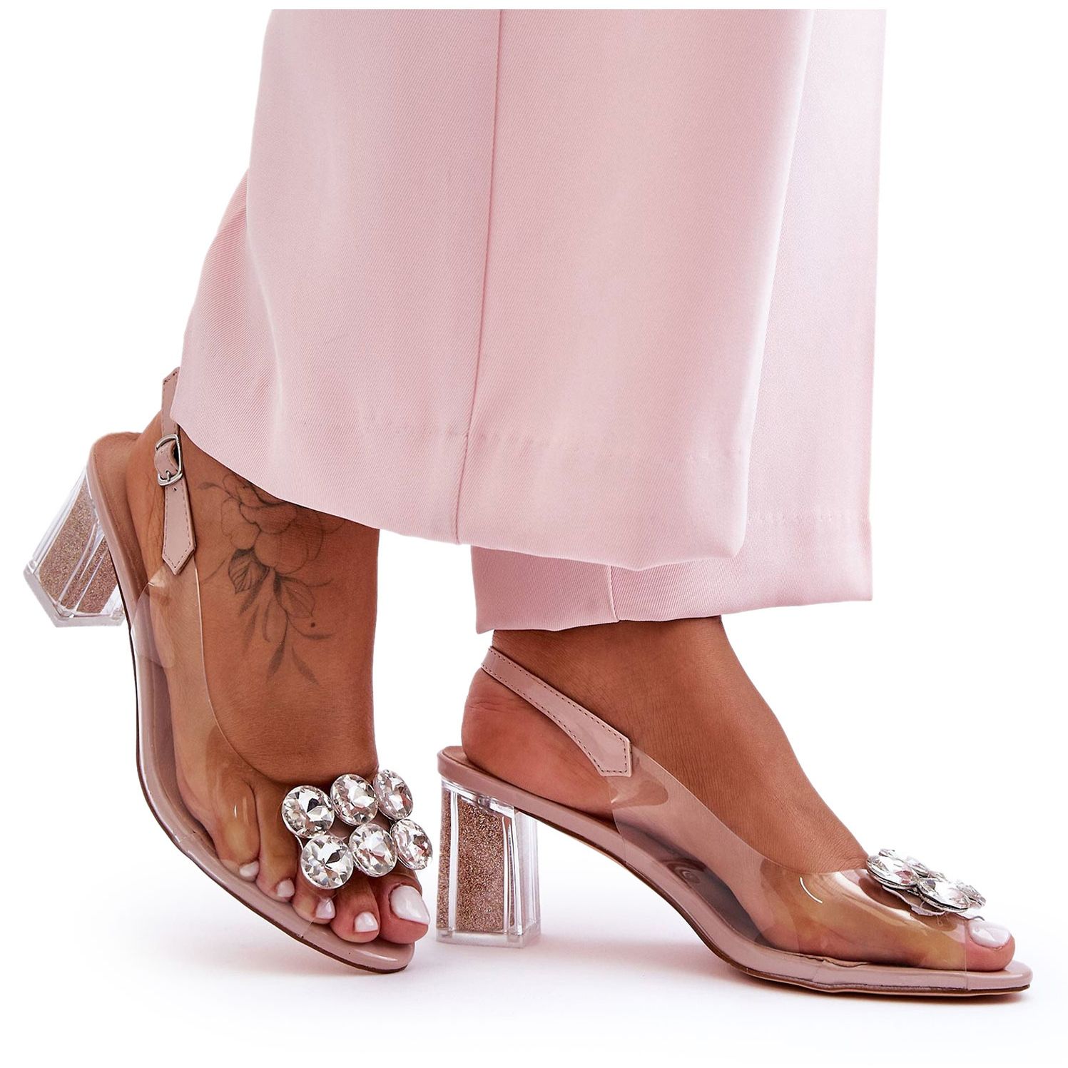 - Modell: Transparente rosa Sandalen mit hohem Absatz
