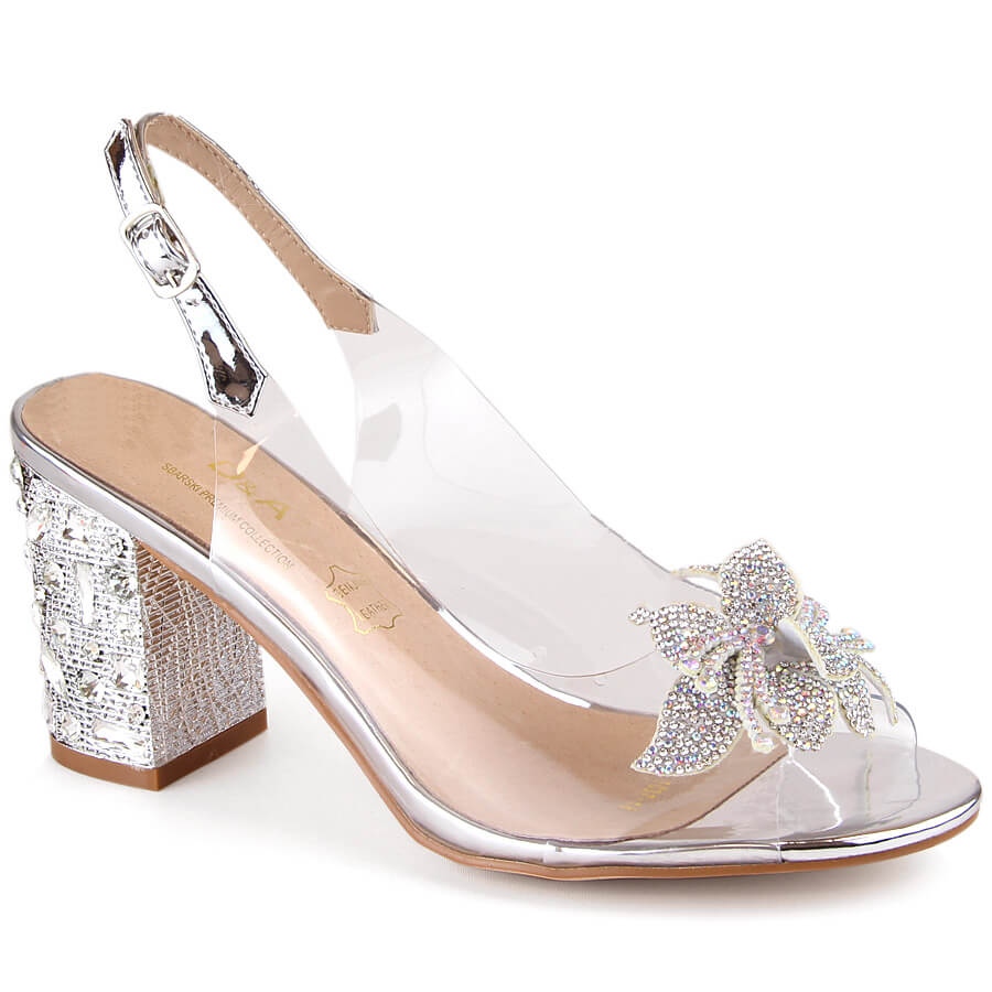 S.Barski Transparente silberne Damensandalen mit Zirkonen S.Barski MR1037-18 silber-