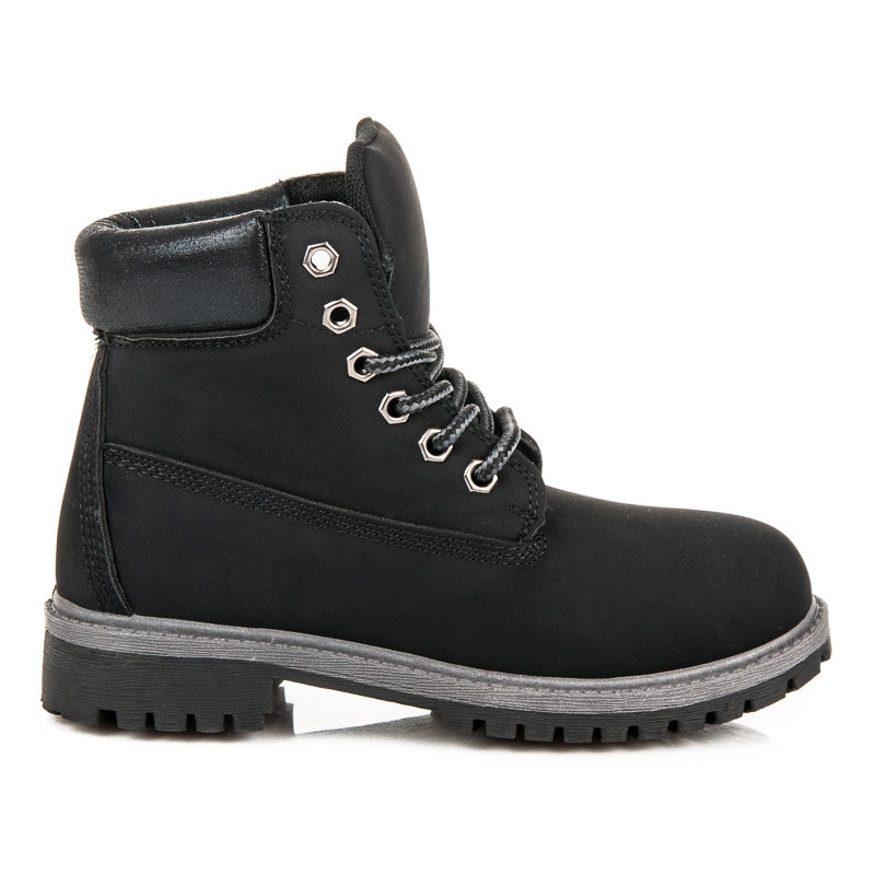 Klassische, bequeme Via Giulia Stiefel – perfekt für kältere Tage. Hergestellt aus hochwertigem, mattem Faux-Wildleder in elegantem Schwarz, mit einem dezenten, glänzenden Einsatz oben und dekorativen, dreifachen Feinnähten, die den Schuhen einen modischen Charakter verleihen. Durch die Schnürung können Sie sie gut an Ihren Fuß anpassen, und die integrierte und versteifte Ferse sorgt für Stabilität beim Gehen.