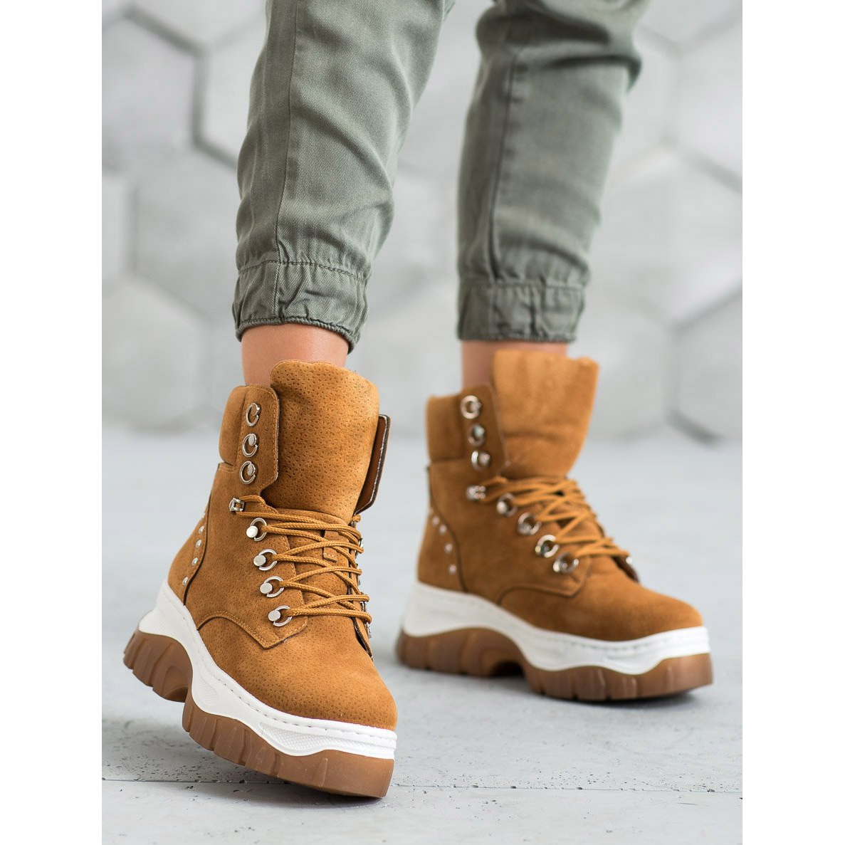 Braune Seastar-Stiefeletten sind die perfekte Wahl für Frauen, die in der Herbst- und Wintersaison sowohl Stil als auch Komfort suchen. Diese eleganten und modischen Schuhe aus hochwertigem lederähnlichem Material garantieren nicht nur ein ansprechendes Aussehen, sondern auch eine Langlebigkeit über viele Jahre. Dank der massiven Sohle mit 6 cm hohem Plateau fühlt sich jede Frau auf jedem Untergrund sicher und sorgt zudem für ausreichende Dämpfung.