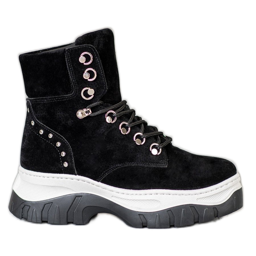Ein massives 4 cm hohes Plateau und ein 6 cm flacher Absatz garantieren Tragekomfort und machen diese Stiefel zu einem idealen Begleiter für alle Alltagsausflüge. Sie eignen sich perfekt für die Herbst- und Wintersaison und bieten Stabilität und Komfort auch bei längeren Spaziergängen. Dank der Profilsohle aus Kunststoff sind wir sicher, dass wir auf verschiedenen Untergründen souverän und sicher unterwegs sind.
