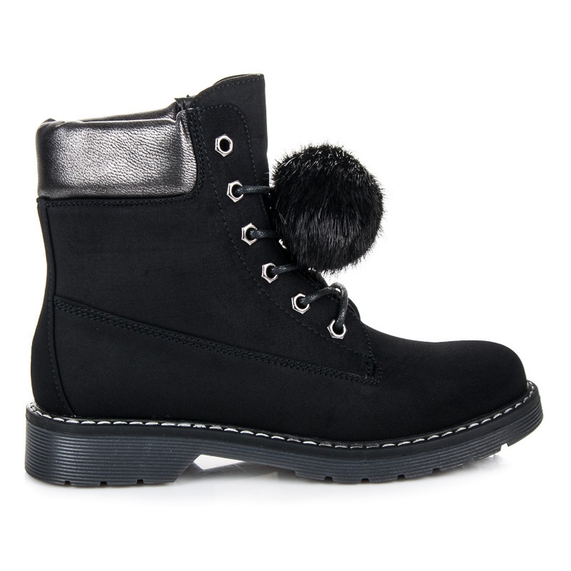 Eines der charakteristischen Elemente dieser Stiefel ist der abnehmbare Pompon, mit dem Sie das Schuhwerk individuell gestalten und problemlos an verschiedene Anlässe anpassen können. Ohne Muster, im klassischen Schwarz gehalten, sind diese Stiefel universell einsetzbar und lassen sich gut mit anderen Kleidungsstücken kombinieren.
