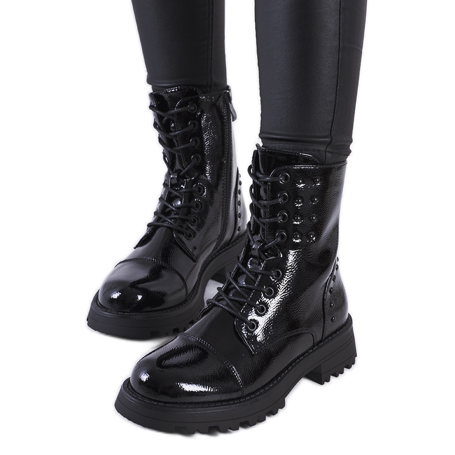 POPOPERRO Lackierte schwarze Trapper - jeden Tag Stil und Bequemlichkeit