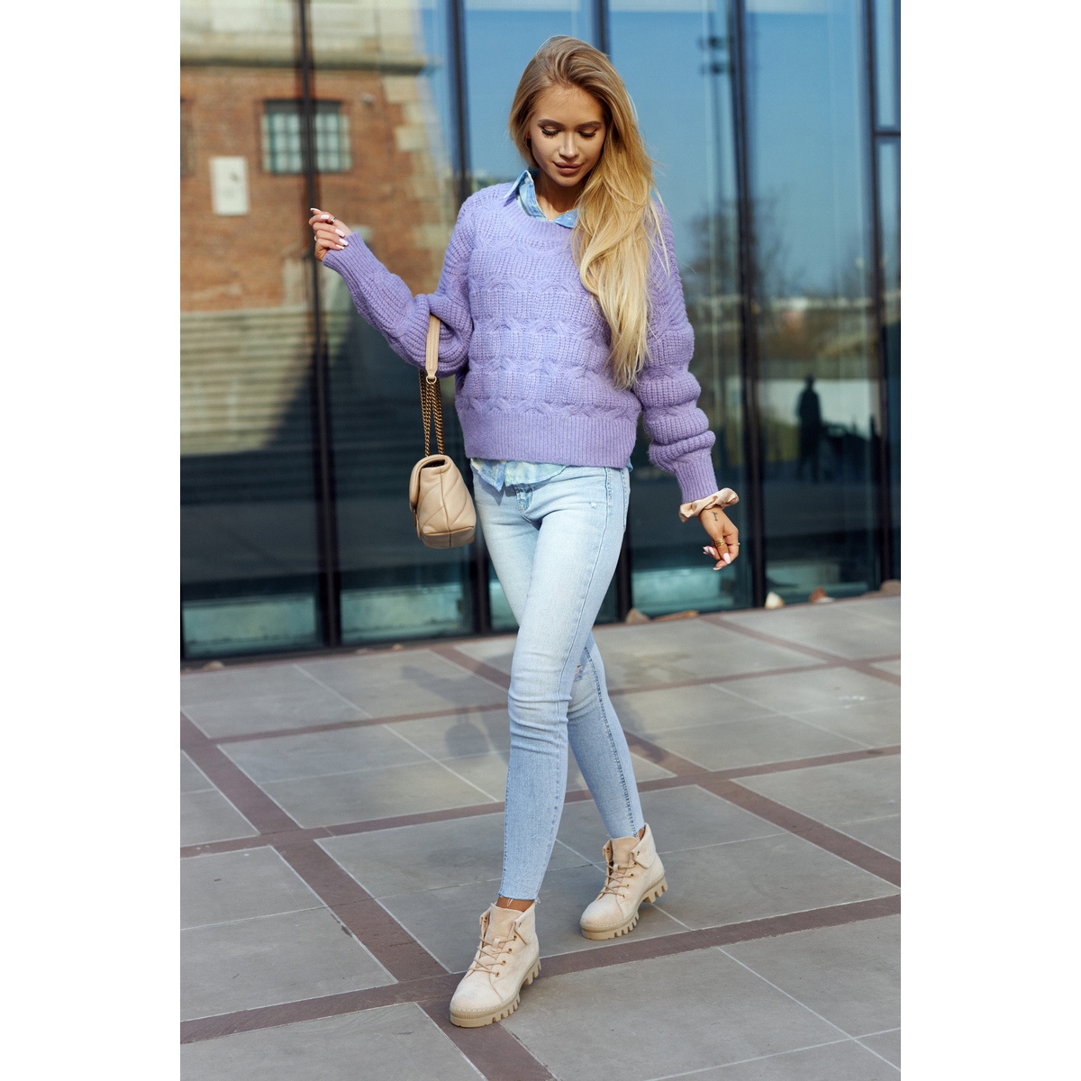 Elegante und komfortable S.Barski -Traper in einer modischen, leichten beige Farbe. Hergestellt aus Öko-Embroidery und auf einer massiven Plattform (Höhe ca. 4 cm) mit interessanten Ausschnitten in der Sohle. Der Obere erreicht den Knöchel und ist leicht aufgerollt, abgerundete und versteife Zehen. Die klassische Bindung für runde Schnürsenkel ermöglicht eine gute Passform. Das Innenraum mit einer weichen ökologischen Ledersohle und einer versteiften Ferse sorgt für den Komfort des täglichen Verschleißes.