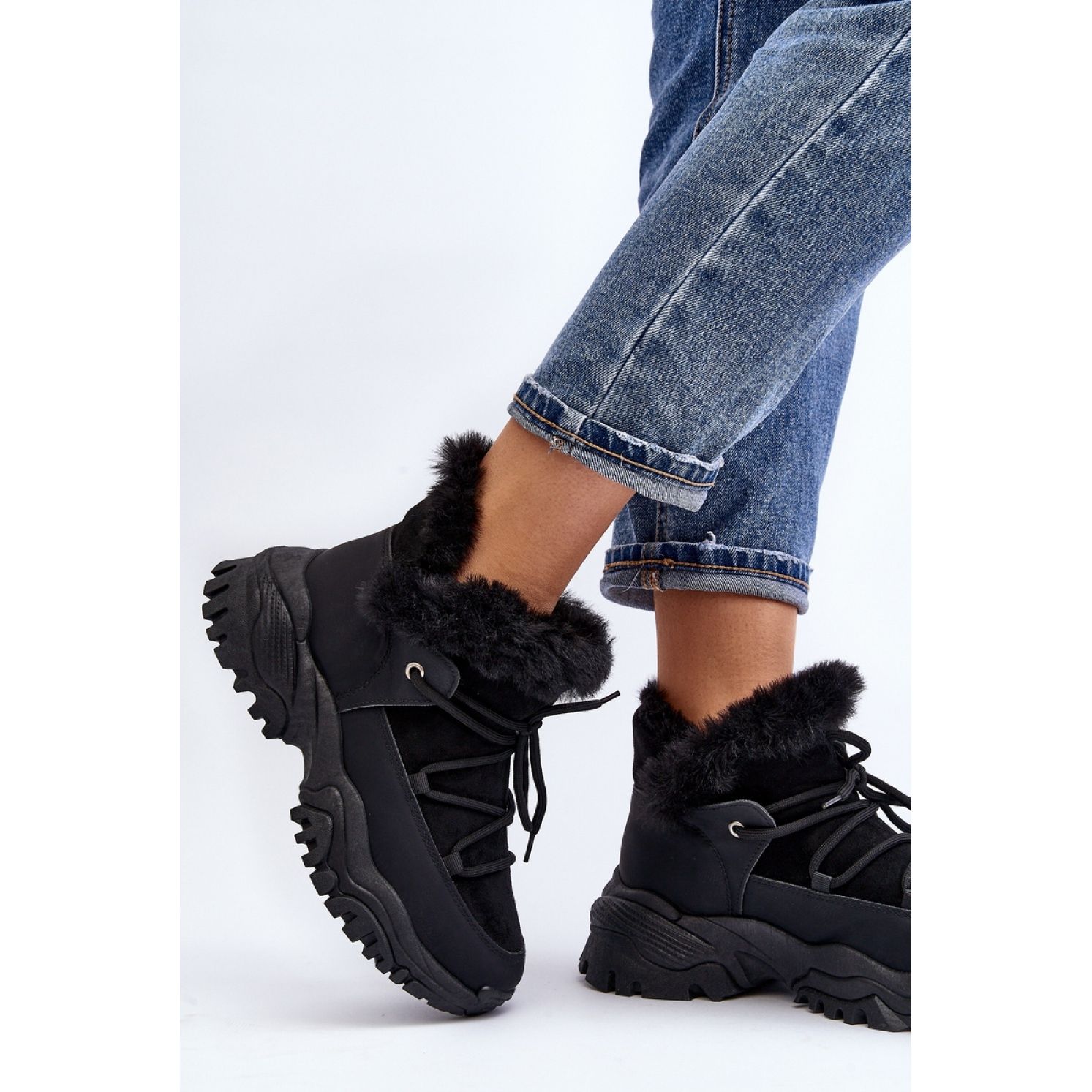 Dank der Höhe der oberen von 10 cm und einer stabilen Ferse mit einer Höhe von 6 cm fügen diese Stiefel nicht nur ein paar Zentimeter hinzu, sondern gewährleisten auch eine Gewissheit. Darüber hinaus stabilisiert die 3,5 cm hohe Plattform den Fuß perfekt, was sie zu einer idealen Lösung für die täglichen Ausgaben macht.