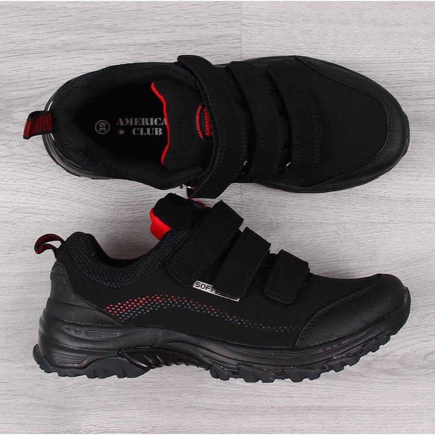 American Club Trekkingschuhe mit Klettverschluss wasserdicht schwarz und rot American Club