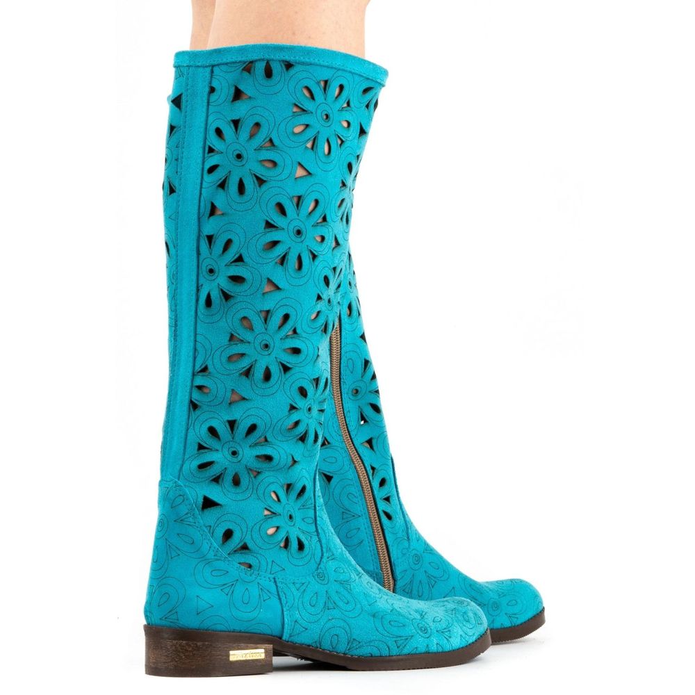 Olivier Olivier Türkis durchbrochene Damenstiefel blau