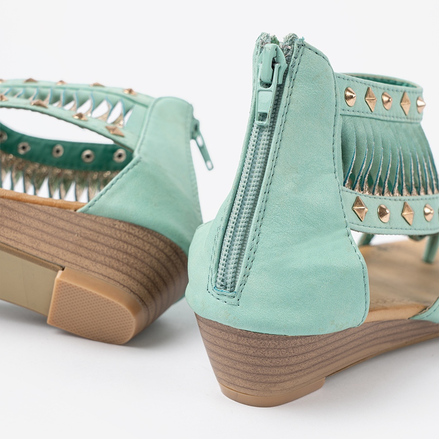 Details: Shelvt Türkisfarbene Sandalen mit Boho -Bolzen