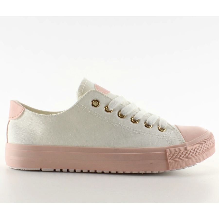 Charmante, niedrige Damen-Sneaker in einer originellen Version – klassisches weißes Canvas kombiniert mit dezentem, pastellfarbenem Gummi in Rosatönen. Das Modell mit gepflegtem Schnitt, abgerundeter Spitze und Schnürverschluss eignet sich sowohl für den Alltag als auch für den Freizeitlook.