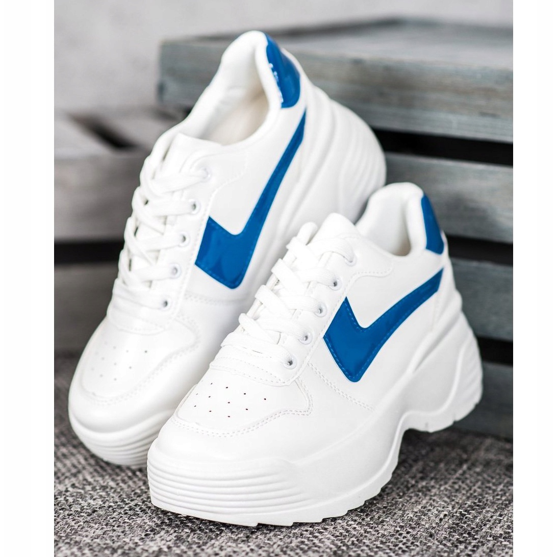 Entdecken Sie Mode neu mit Kylies weißen Plateau-Sneakern! Diese einzigartigen Schuhe vereinen originelles Design und Komfort und passen perfekt zum Alltags-Styling. Blau lackierte Einsätze verleihen ihnen einen einzigartigen Charakter und machen sie zum Lieblingsaccessoire jeder Frau.