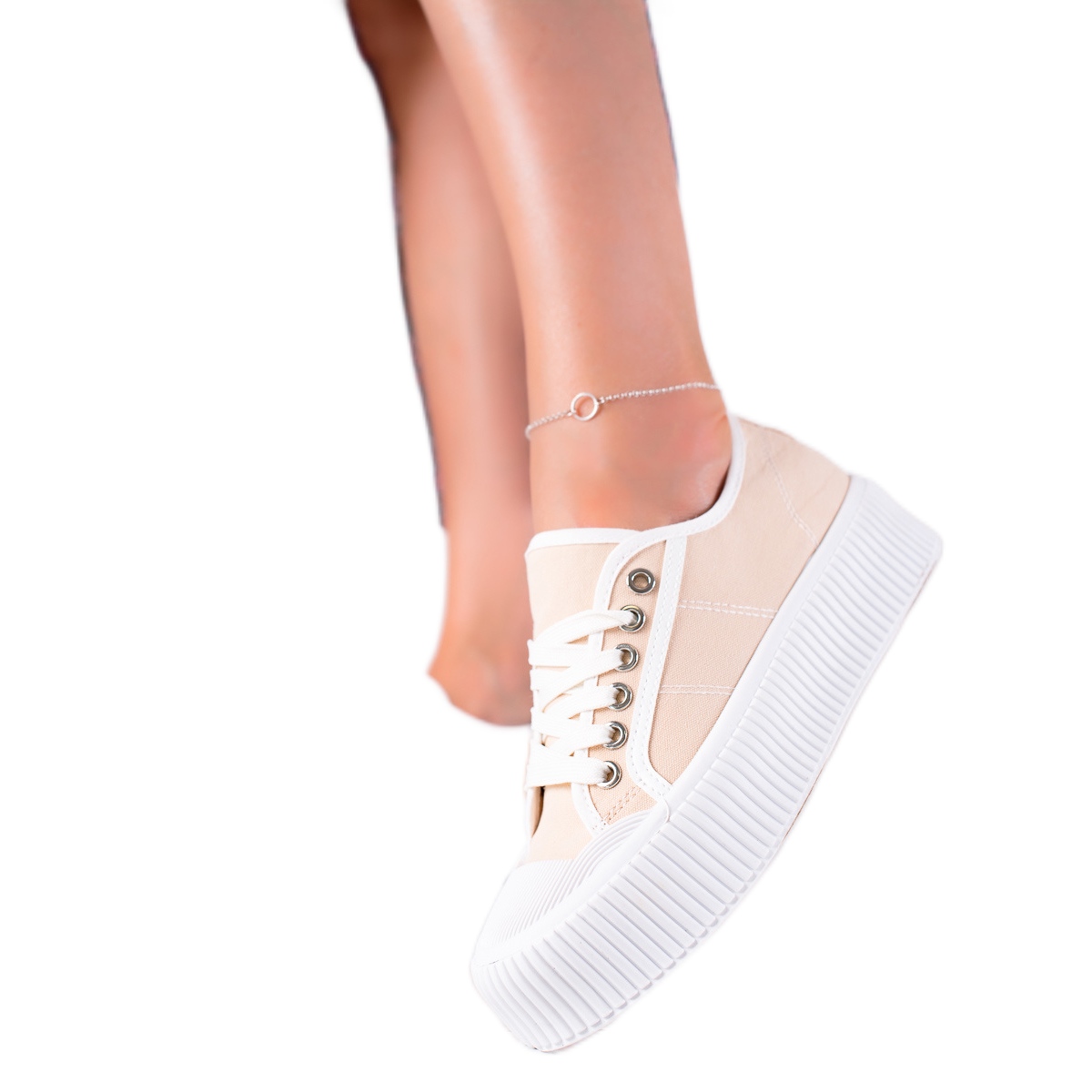Details: SHELOVET Turnschuhe auf einer breiten Plattform beige