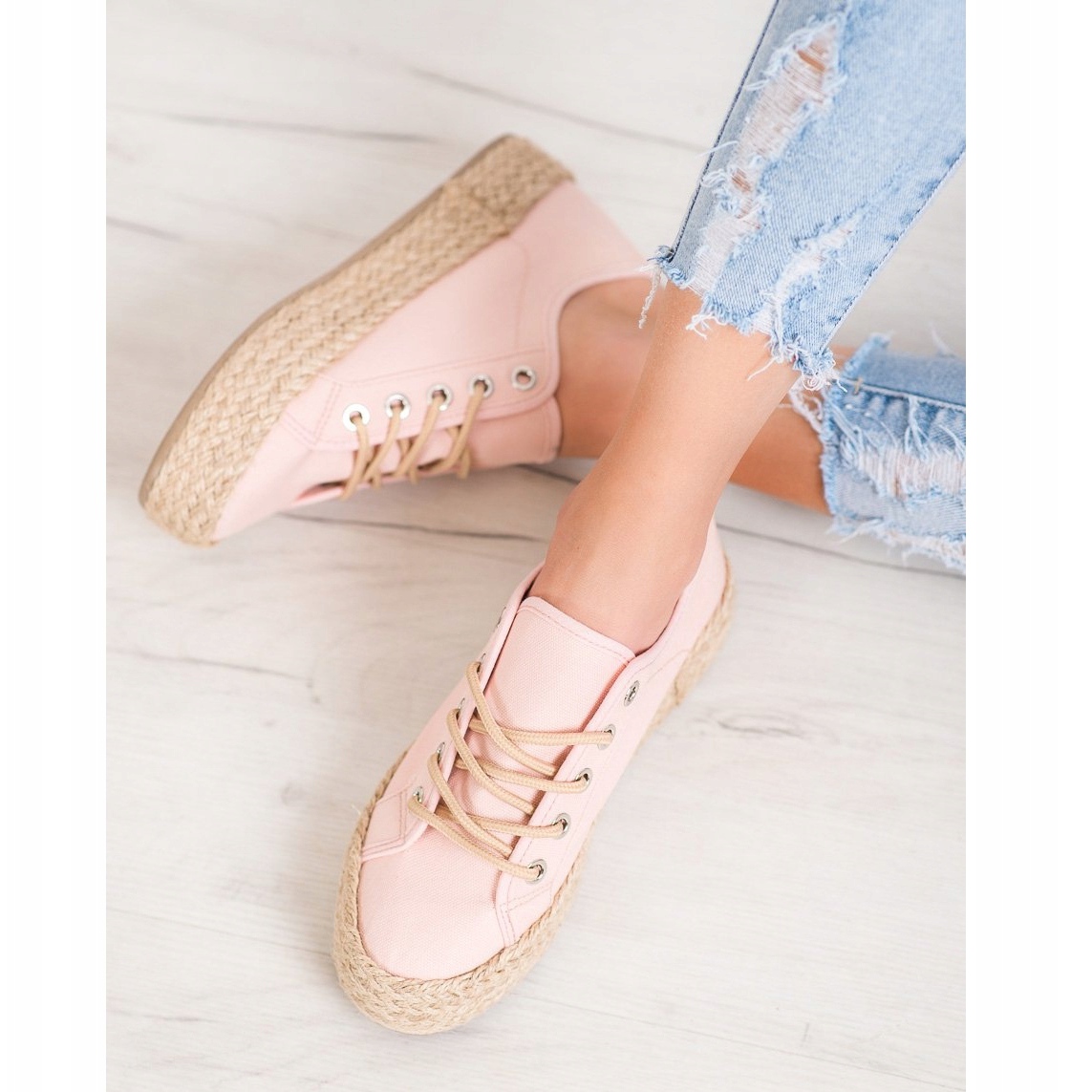 Details: Kylie Turnschuhe auf einer Strohplattform rosa