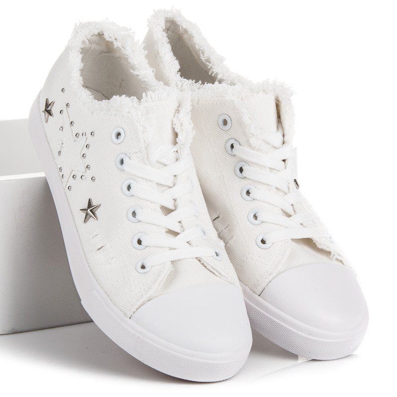 Entdecken Sie die dezente Eleganz der weißen Stoffsneaker, die die perfekte Ergänzung zu jedem Styling sind. Diese einzigartigen Schuhe zeichnen sich durch einen schneeweißen Farbton und ein einzigartiges Finish um den Knöchel aus, was ihnen einen mädchenhaften Charme verleiht. Verzierungen in Form von zarten Punkten und Sternen heben die Sneaker hervor und sorgen gleichzeitig für einen minimalistischen Stil.