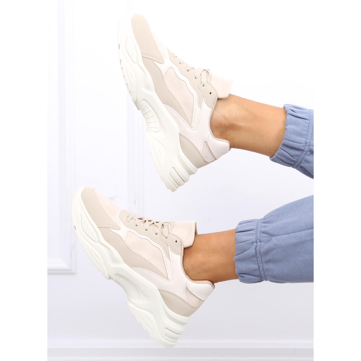 Lernen Sie die einzigartigen pastellfarbenen Sportschuhe Dalla Beige kennen, die durch ihr modernes Design und ihren Tragekomfort begeistern. Dieses ungewöhnliche Modell, das Frauen gewidmet ist, die jeden Tag Wert auf modischen Stil legen, vereint die Eleganz von Öko-Wildleder und Faux-Wildleder und ist somit eine ideale Wahl für viele verschiedene Anlässe.