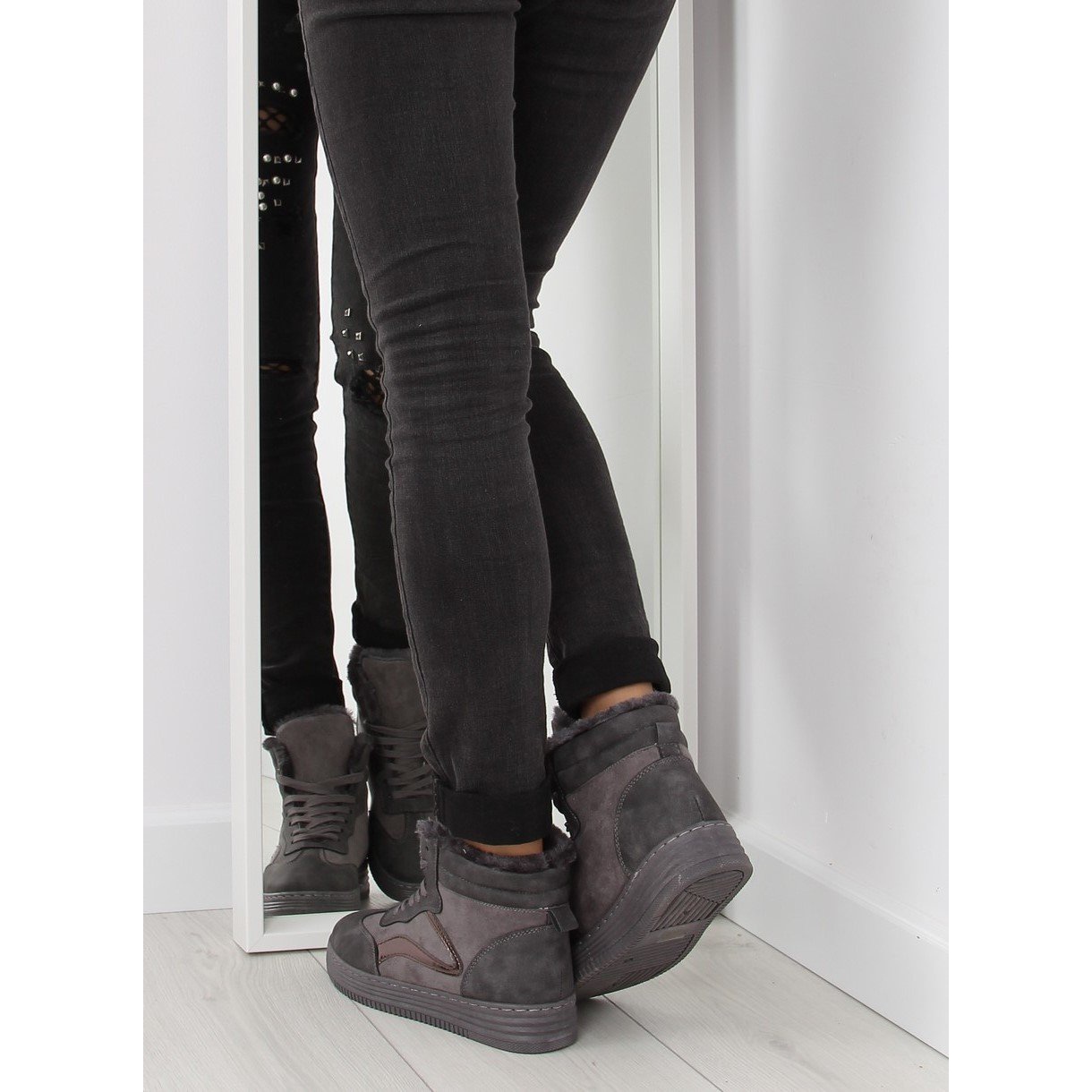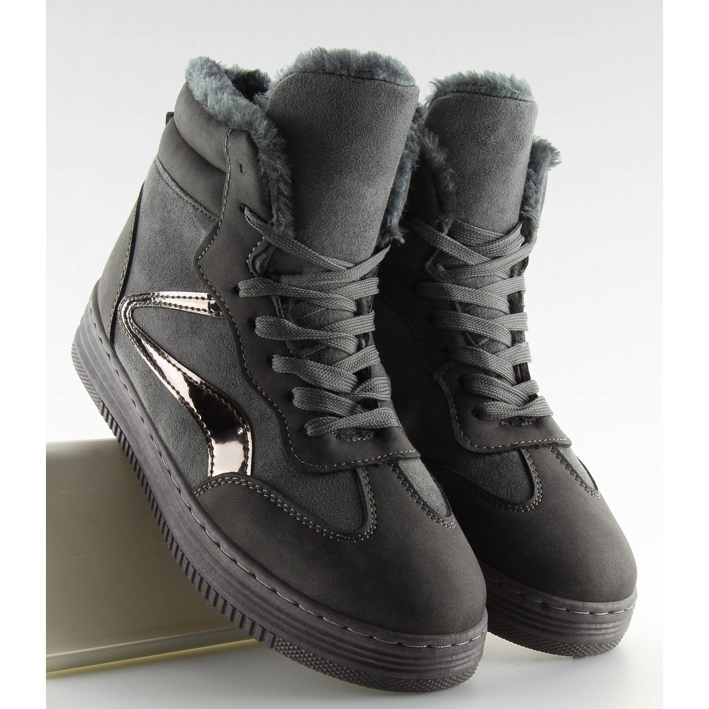 Entdecken Sie Komfort und Stil mit den grauen isolierten Sneakers BOK-1103 in Dunkelgrau. Diese einzigartigen Damen-Sportschuhe, konzipiert für frostige Tage, vereinen modisches Design und praktische Lösungen. Der hohe Schaft, der bis über den Knöchel reicht, sorgt nicht nur für Eleganz, sondern schützt auch effektiv vor Kälte.