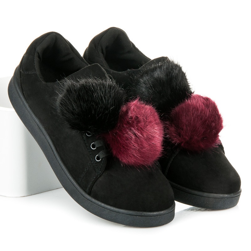 Wir präsentieren Sneaker aus der neuesten Vices-Kollektion – ein Modell mit abnehmbaren Pompons, das klassischen Stil und eine Prise Verrücktheit vereint. Diese Low-Top-Sneaker aus umweltfreundlichem Wildleder in elegantem Schwarz werden mit Sicherheit zum Lieblingskleidungsstück jeder Frau.