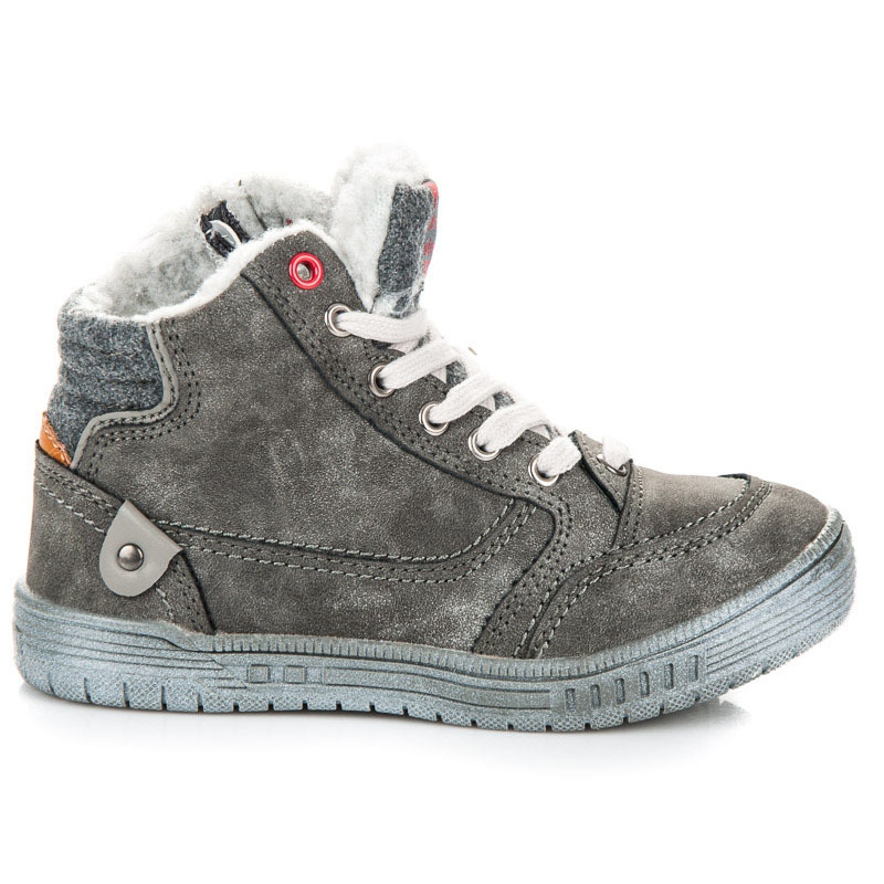 Die grauen American Club-Sneaker sind praktische und bequeme Kinderschuhe, die einen sportlichen Stil mit warmer Isolierung kombinieren. Hergestellt aus ökologischem Leder, leicht zu reinigen und das Innenfutter aus Schaffell sorgt für thermischen Komfort an kälteren Tagen. Klassische Schnürsenkel ermöglichen eine präzise Anpassung an den Fuß, was die Stabilität beim Spielen und bei alltäglichen Aktivitäten verbessert.