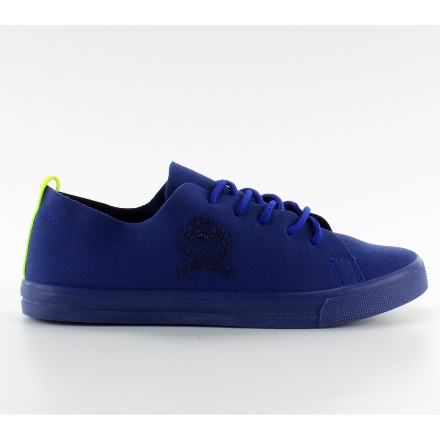 Einzigartige Sneaker aus einem sehr originellen, weichen Material, das Alcantara ähnelt. Angenehm im Griff, leicht und flexibel – perfekt für den täglichen Gebrauch. Der kontrastierende Neonstreifen auf der Rückseite verleiht Charakter und passt perfekt zum dunkelblauen Obermaterial und den mehrfarbigen Details. Die klassische, niedrige Verarbeitung und der Schnürverschluss sorgen für eine gute Passform am Fuß.