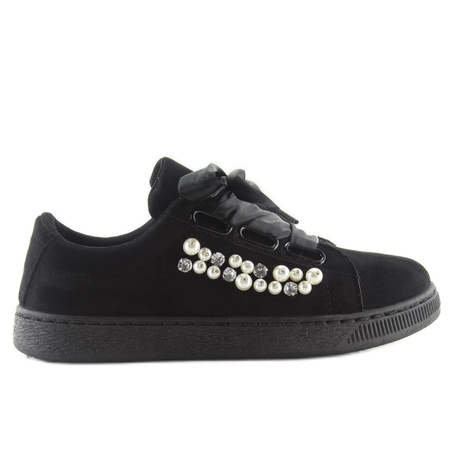 Details: Turnschuhe mit Perlen Schwarz H99-11 Schwarz