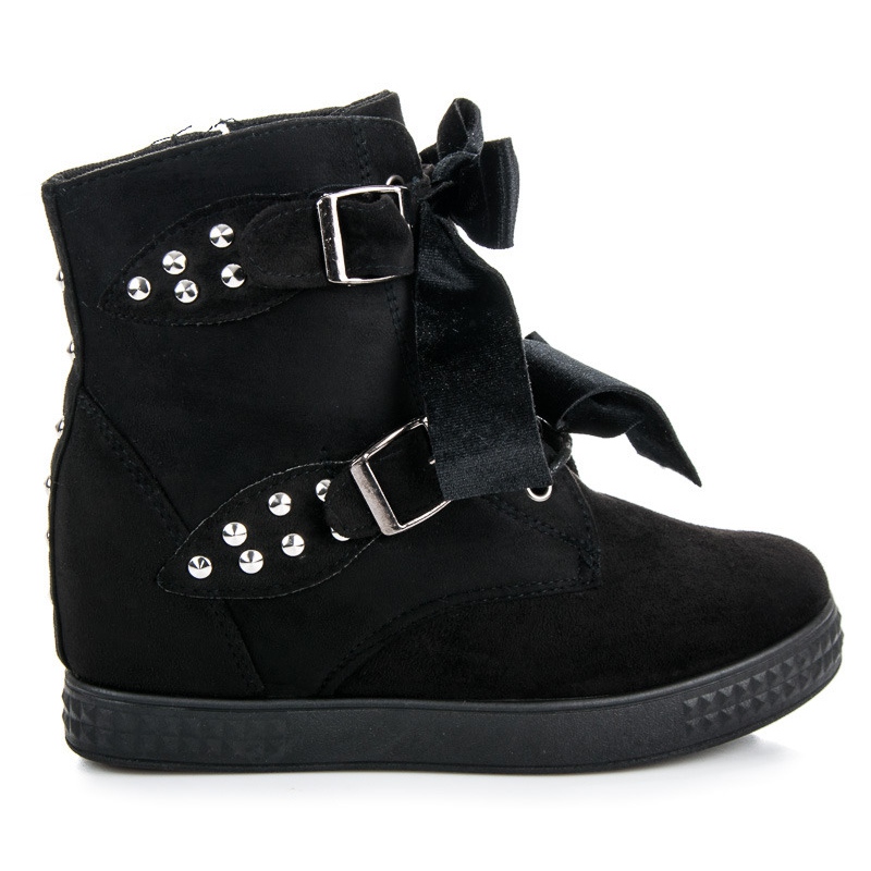Entdecken Sie Eleganz und Komfort in einem dank der schwarzen Sneakers mit Schleifen von Inna Marka. Diese High-Top-Sneaker werden durch ihr einzigartiges Design und attraktive Details wie Nieten sicherlich alle Blicke auf sich ziehen. Aus hochwertigem ökologischem Wildleder gefertigt, bieten sie nicht nur Stil, sondern auch Tragekomfort.