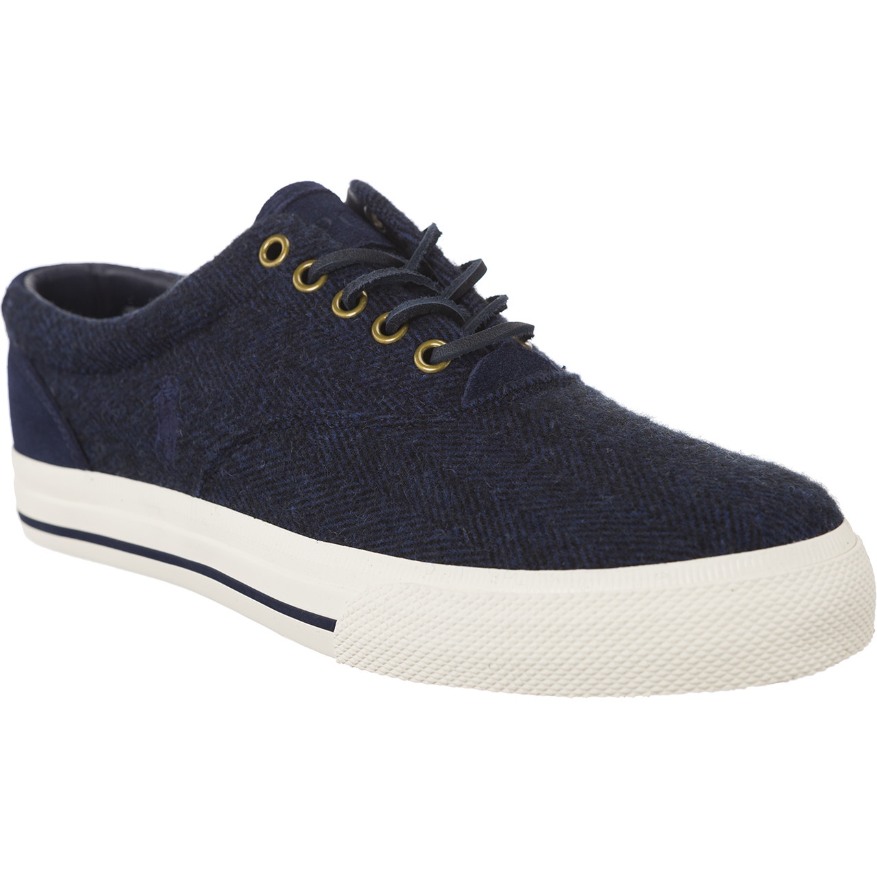 Klassische, elegant-lässige Sneaker von Polo Ralph Lauren, die Komfort mit zeitlosem Design verbinden. Das marineblaue Obermaterial aus luftigem Stoff ist mit einem dezenten „Fischgrätenmuster“ versehen und das gesamte Modell ist auf einer weißen, strapazierfähigen Gummisohle montiert, die für guten Halt sorgt. Die abgerundete Nase und der weich gepolsterte Kragen garantieren eine bequeme Nutzung den ganzen Tag über.
