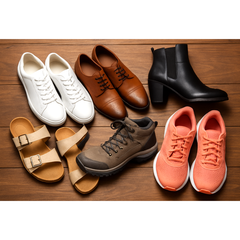 ** Vegane Sneakers **: Von klassischem Weiß bis hin zu farbenfrohen Sportmodellen. Marken wie Veja, Stella McCartney oder Reebok bieten eine große Auswahl an. ** Elegante Schuhe **: Oxfords, Slipper und High Heels aus Pflanzenmaterialien oder hochwertiger Synthetik. Perfekt für das Büro und für formelle Anlässe. ** Stiefel und Stiefel **: Wintermodelle mit synthetischer Isolierung statt gefüllt. Wasserdicht und warm. ** Sandalen und Flip -Flops **: Sommergummi -Modelle, Kork oder recycelte Materialien. Bequem und luftig. ** Trekking -Schuhe **: Technische Modelle zum Wandern mit wasserdichten synthetischen Membranen. Sie bieten großen Griff und Ausdauer. ** Sportschuhe **: Für Laufen, Fitness oder andere Aktivitäten. Leicht, atmungsaktiv und stützender Fuß.