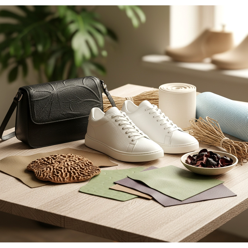 Auch pflanzliche Materialien spielen eine immer wichtigere Rolle. Ananasblattleder (Piñatex) erfreut sich bei Designern auf der ganzen Welt zunehmender Beliebtheit. Ebenso sind Schalen aus Myzel, Kaktus (Marke Desserto) oder Traubenschalen (Abfälle aus der Weinherstellung) Beispiele für kreative und nachhaltige Lösungen. Diese Materialien sind nicht nur tierfreundlich, sondern auch umweltfreundlich, da sie oft auf landwirtschaftlichen Abfällen basieren.