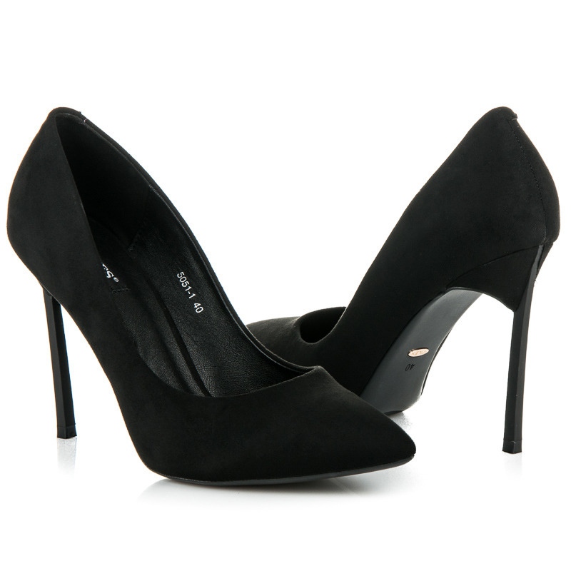 VICES Wildleder-High-Heels – ein Klassiker in einer modischen Variante. Schwarzes, ökologisches Wildleder, eine schmale Spitze und ein 10,5 cm hoher Stiletto ergeben ein zeitloses Modell, perfekt für einen Abend, eine Feier oder ein elegantes Event.