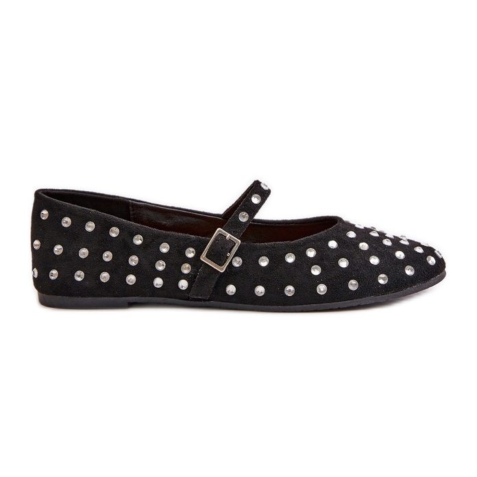 Ballerinas, hergestellt aus hochwertigem Öko -Wildleder und fällt auf, dank zahlreicher Strasssteine, die Strasssteine imitieren, die ihnen Eleganz und einzigartiger Charakter verleihen. Der verstellbare Riemen sorgt für Stabilisierung und Komfort, sodass Sie sie den ganzen Tag genießen können.