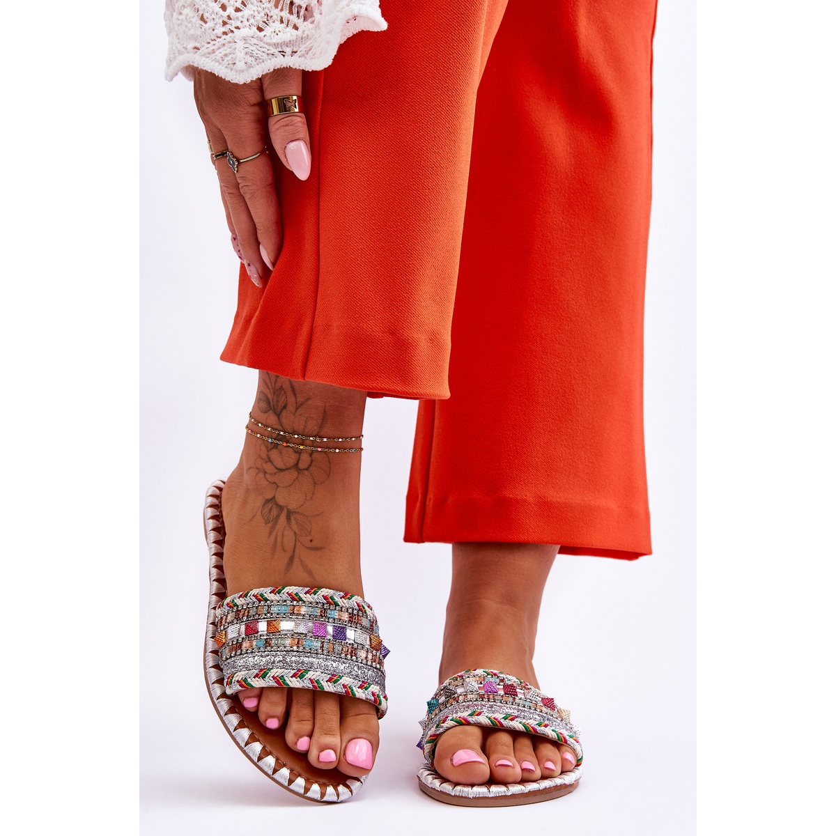 Inna marka Verzierte Damensandalen Weiß Bellisa silber-
