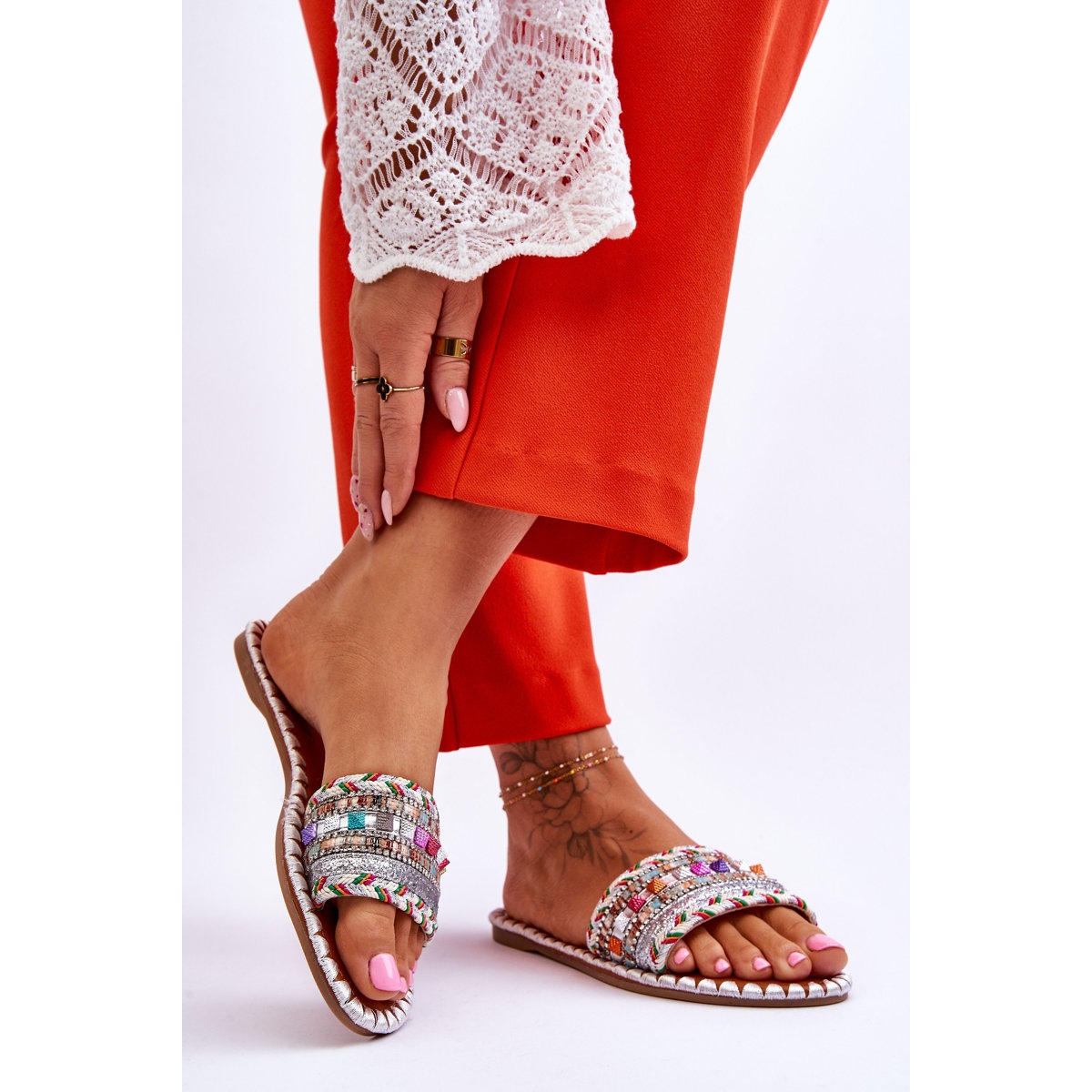 Details: Verzierte Damensandalen Weiß Bellisa silber-