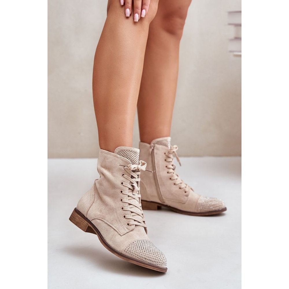 Inna marka Verzierte Stiefel mit flachem Absatz, Öko-Wildleder, warm, hellbeige Ellieo