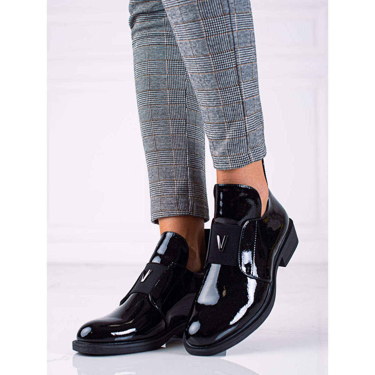 Entdecken Sie Eleganz und Komfort mit den niedrigen Damenstiefeln von Vinceza, die die perfekte Ergänzung zu Ihrer Herbst- und Wintergarderobe sein werden. Diese schwarzen Stiefel sind aus ökologischem Lackleder gefertigt, was ihnen einen einzigartigen Glanz und ein elegantes Aussehen verleiht. Dank der versteiften Ferse und des hohen Schafts, der bis über den Knöchel reicht, halten diese Schuhe den Fuß perfekt und sorgen den ganzen Tag über für Komfort.