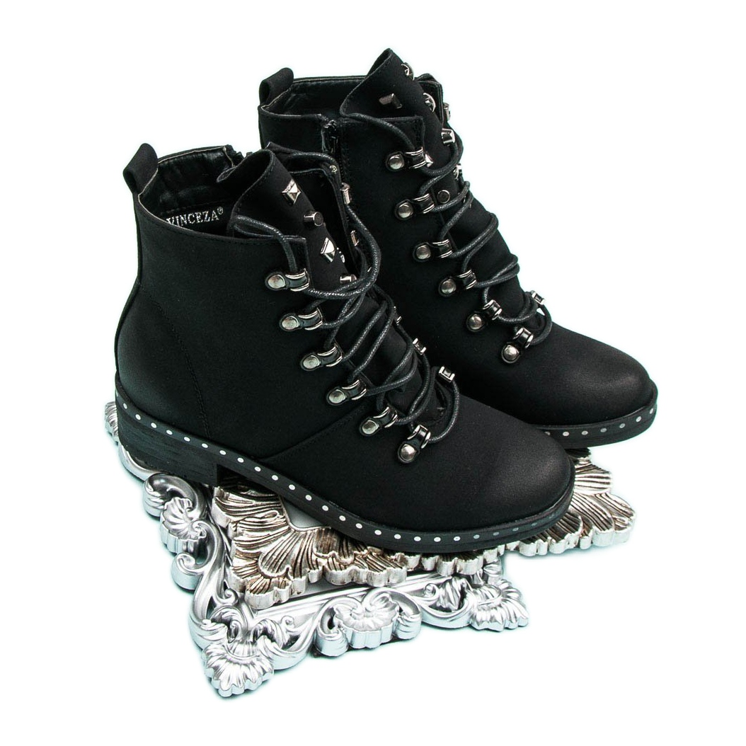 Es besteht kein Zweifel, dass die schwarzen VINCEZA-Schnürschuhe perfekt den Bedürfnissen einer modernen Frau entsprechen und eine ideale Wahl für alltägliche Ausflüge sind. Investieren Sie in Ihren Komfort und Stil, indem Sie sich für diese einzigartigen Stiefeletten entscheiden.
