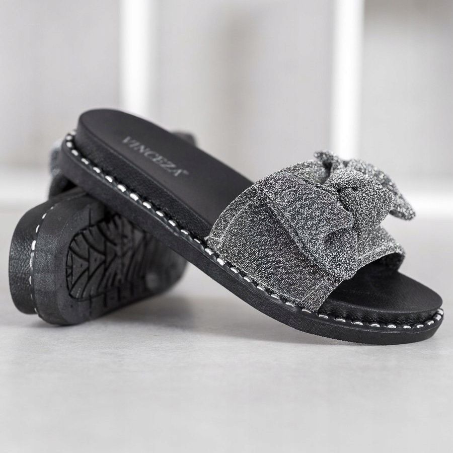 Entdecken Sie einen einzigartigen Stil für Sommertage mit VINCEZA Glitzer-zehenstegsandalen in Schwarz und Grau. Diese modischen Schuhe sind die perfekte Wahl für Frauen, die Wert auf Komfort und Originalität legen. Ihre glänzende, mit Glitzer verzierte Oberfläche verleiht ihnen einen einzigartigen Charakter und eine dezente Schleife sorgt für Eleganz.