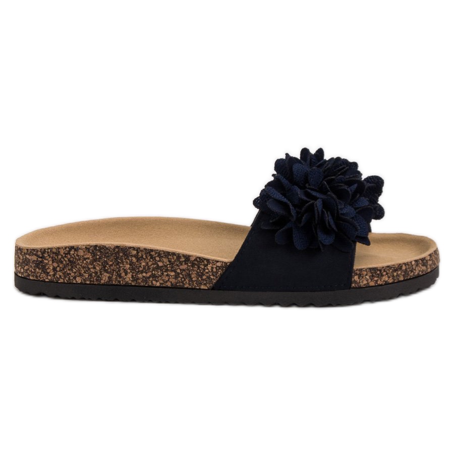 Vinceza VINCEZA Hausschuhe mit Blumen blau navy blau
