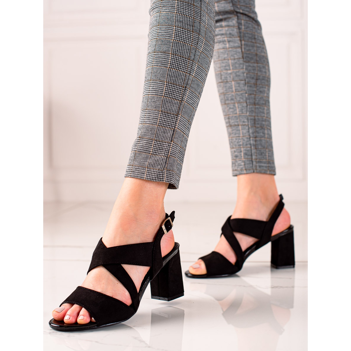 Die Sandalen zeichnen sich durch eine offene Ferse und keine Spitze aus, was für maximalen Komfort und Atmungsaktivität sorgt. Der 8 cm hohe Blockabsatz sorgt für Chic und stabilisiert gleichzeitig Ihren Schritt. Aus hochwertigem Wildlederimitat und ökologischem Leder gefertigt, sind diese Sandalen nicht nur stylisch, sondern auch ökologisch.