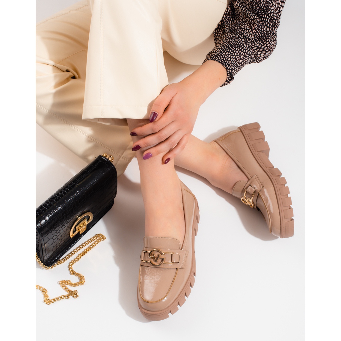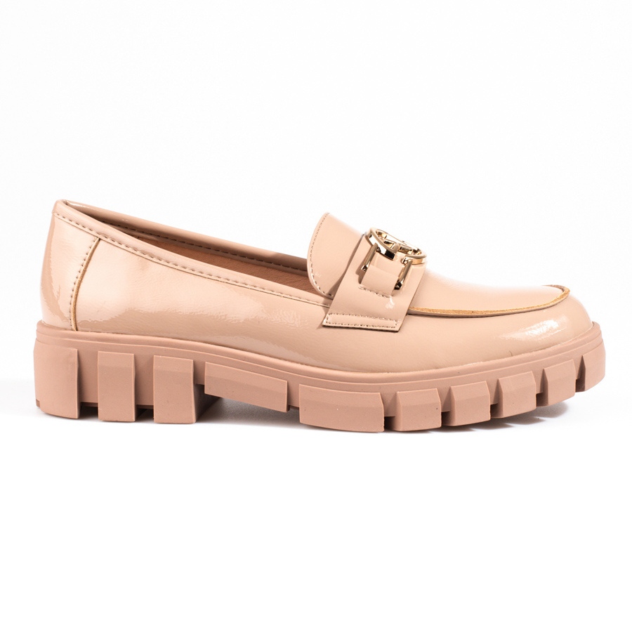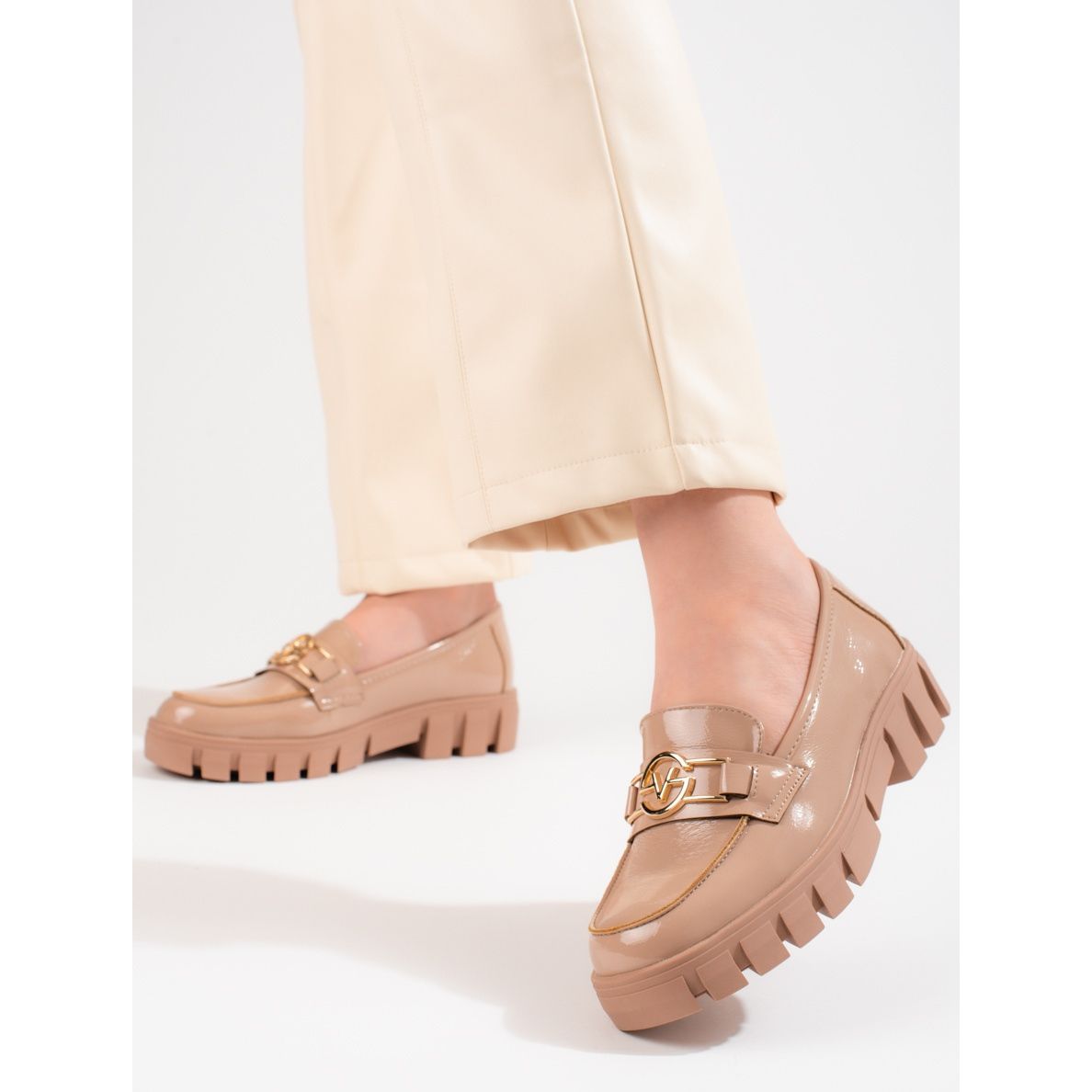 Details: Vinceza Lack-Plateau-Loafer für Damen beige