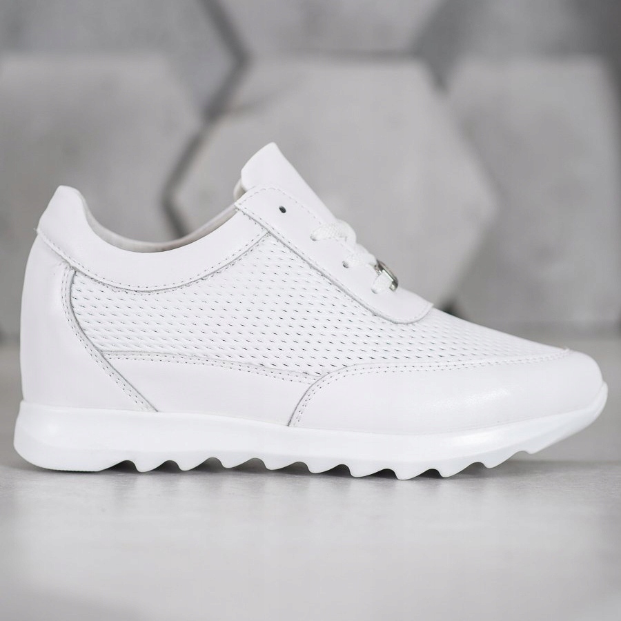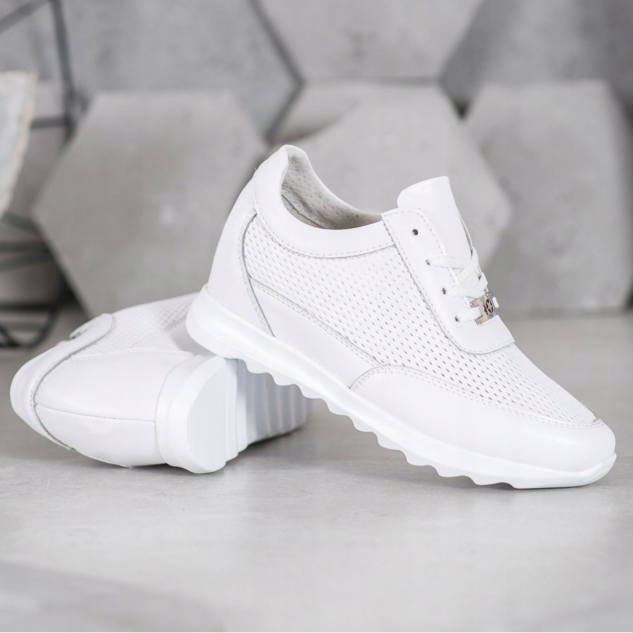 Vinceza-Sneaker zeichnen sich durch einen versteckten 5 cm hohen Keilabsatz aus, der Ihnen zusätzliche Zentimeter an Höhe verleiht und gleichzeitig den Komfort genießt. Ihre universelle weiße Farbe passt perfekt zu Jeans, aber auch zu einem eleganten Rock, was sie zu einer vielseitigen Ergänzung jeder Garderobe macht.