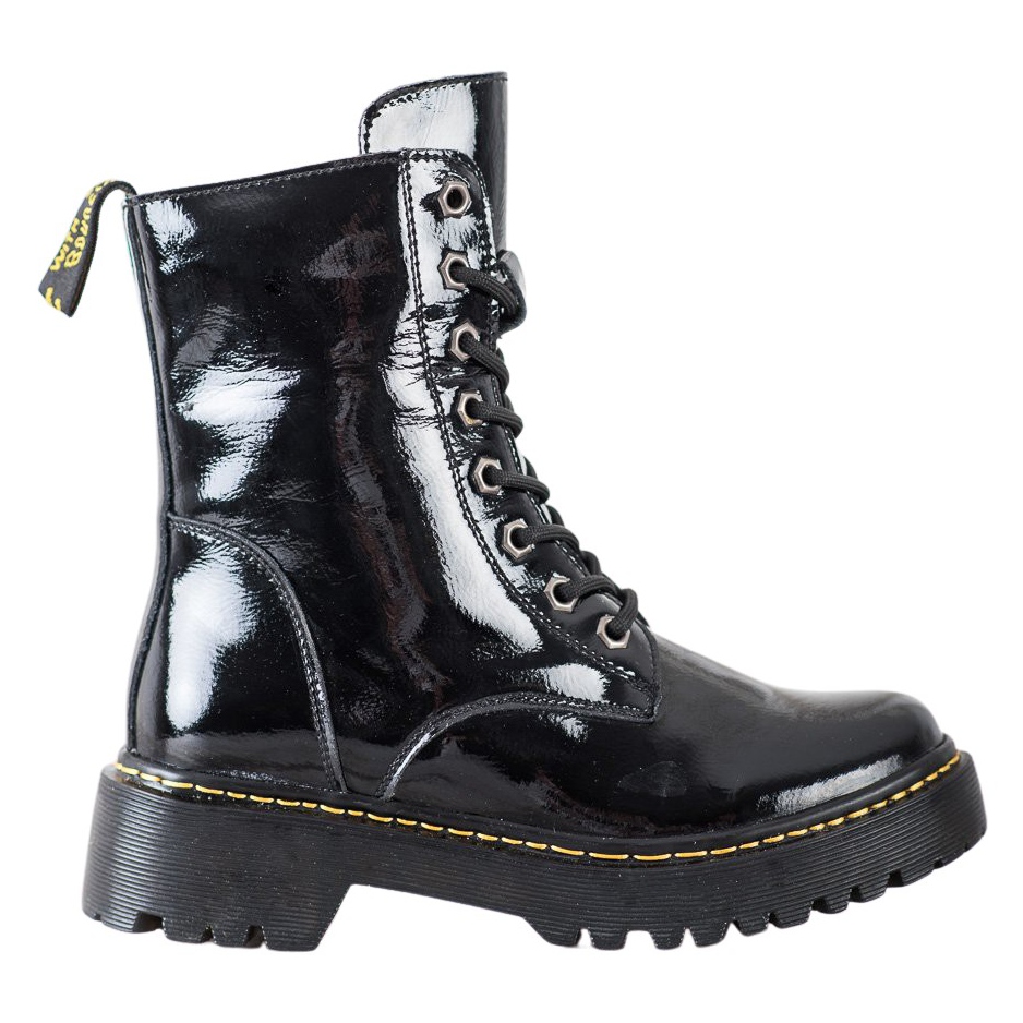 Praktische Lösungen wie ein Schnürverschluss und ein seitlicher Reißverschluss ermöglichen ein bequemes und schnelles An- und Ausziehen der Schuhe. Die Sohle mit dicker, klar profilierter Struktur und einem 4 cm hohen Plateau erhöht den Tragekomfort und garantiert guten Halt auf verschiedenen Untergründen.