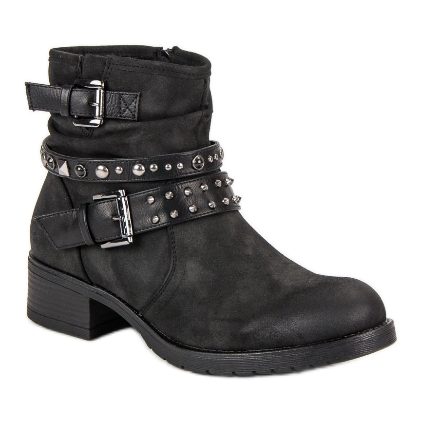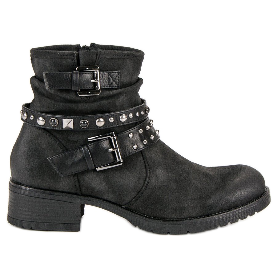 Die schwarzen Arbeiter von VINCEZA sind die perfekte Wahl für jede mutige Frau, die sich von der Masse abheben möchte. Diese stilvollen Stiefel aus hochwertigem Faux-Wildleder vereinen Eleganz mit modischem Design. Ihre charakteristischen Zierschnallen und Details in Form von Strasssteinen und Nieten verleihen ihnen einen rockigen, einzigartigen Charakter, der perfekt zum lässigen Stil passt.