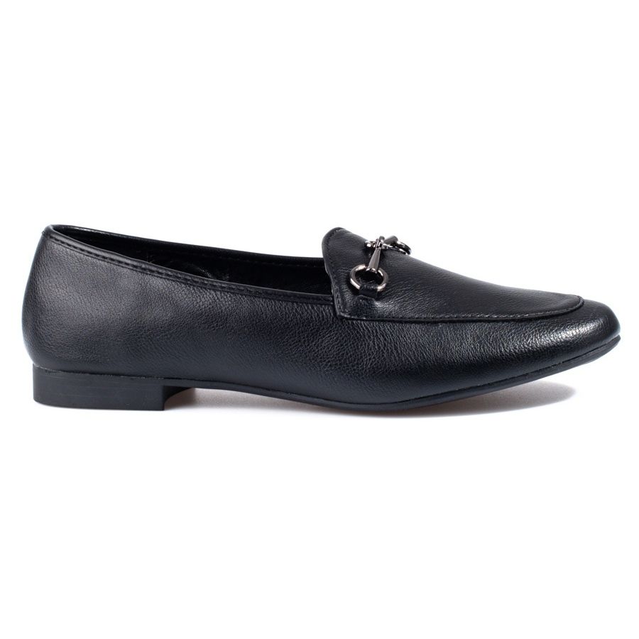 Die schwarzen Mokassins sind mit dezenten Strasssteinen verziert, die ihnen etwas Charakter verleihen, und durch ihr minimalistisches Design lassen sie sich leicht mit verschiedenen Stilen kombinieren. Die Innensohle aus Ökoleder sorgt für zusätzlichen Tragekomfort und das klassische schwarze Finish macht diese Schuhe zu einem zeitlosen Element jeder Kollektion.