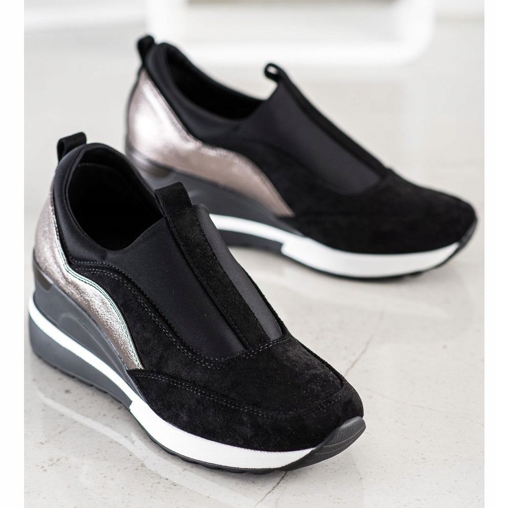 Wir präsentieren VINCEZA Slip-On Footwear in einem eleganten Schwarzton, der perfekt zu lässigem Stil und alltäglicher Eleganz passt. Diese bequemen Damen-Sportschuhe sind die perfekte Wahl für jeden Anlass und bieten Komfort und einen modischen Look.