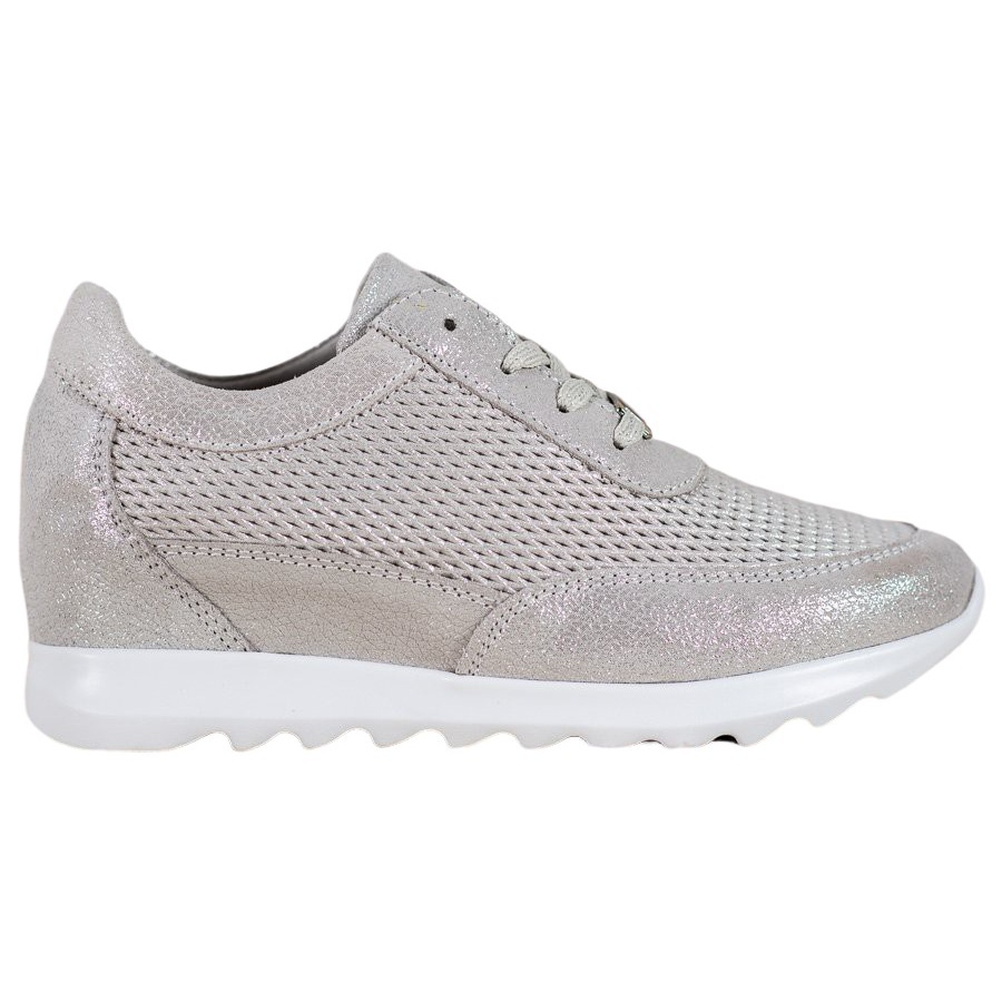 Die glänzenden VINCEZA Leder-Sneaker in Hellgrau sind die perfekte Wahl für moderne Frauen, die Wert auf Stil und Komfort legen. Diese Lederschuhe sehen nicht nur toll aus, sondern bieten auch außergewöhnliche Leichtigkeit und Komfort, was sie zu einer idealen Lösung für den täglichen Gebrauch und das Training macht.