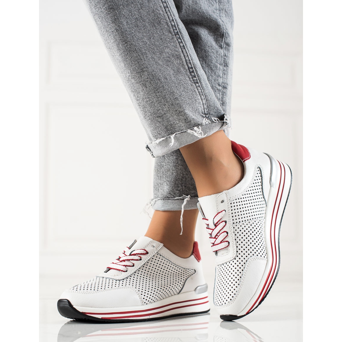 Diese Sneaker bestehen sowohl außen als auch innen zu 100 % aus echtem Leder und bieten nicht nur einen eleganten Look, sondern auch Haltbarkeit und Komfort. Das durchbrochene Muster verleiht Leichtigkeit und macht die Schuhe perfekt für die Frühlings- und Sommersaison, und der integrierte, weiche Absatz garantiert Tragekomfort.