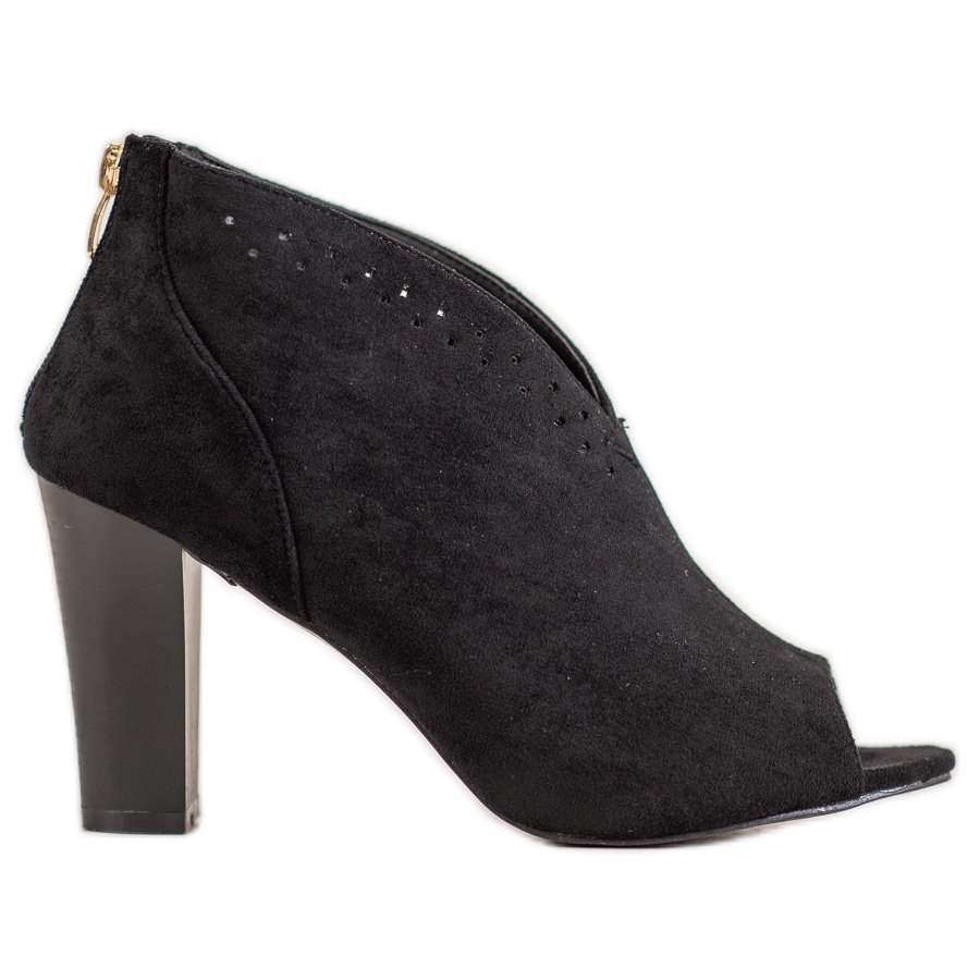 VINCEZA Open Toe Stiefeletten in Schwarz sind die perfekte Wahl für Frauen, die Eleganz mit modernem Stil verbinden möchten. Aus hochwertigem ökologischem Wildleder gefertigt, bieten diese Stiefeletten nicht nur ein attraktives Aussehen, sondern auch Tragekomfort. Das originelle Open-Toe-Design verleiht jedem Styling einen einzigartigen Charakter.