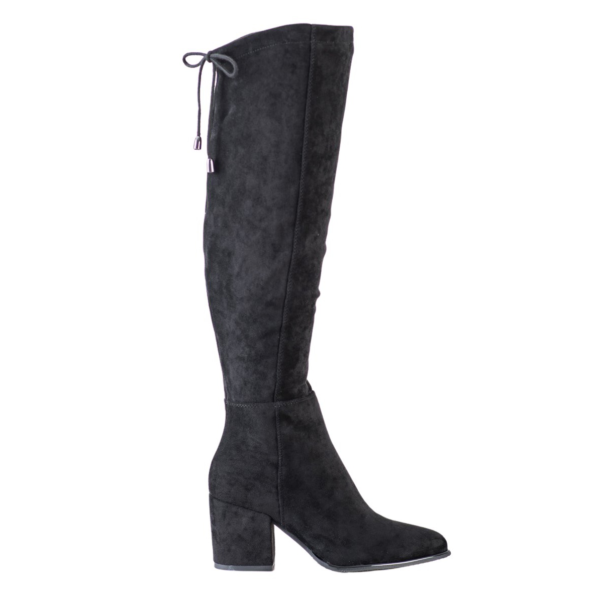 Die eingearbeitete, weiche Fersenkappe und die Isolierung sorgen für Tragekomfort auch an kälteren Tagen. Die runde Spitze und der Schaft über dem Knie sorgen für Eleganz und Chic, und der markante 7,5-cm-Blockabsatz sorgt dafür, dass Sie sich bei jedem Schritt sicher fühlen.