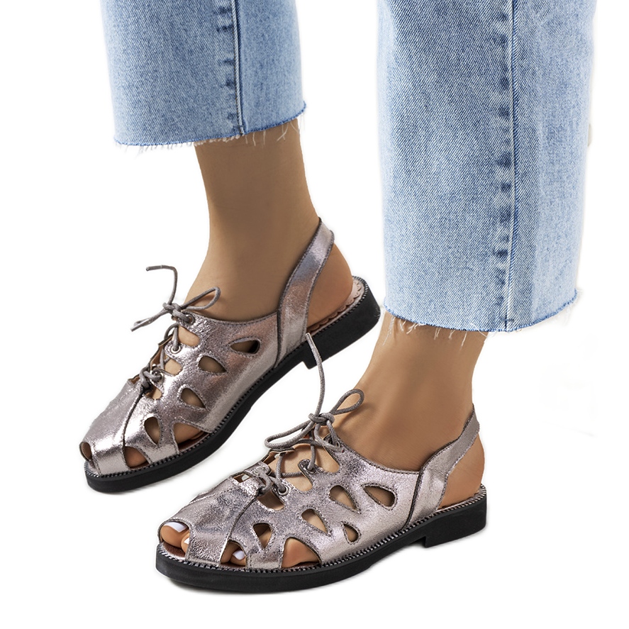 Elegante VLL-Sandalen (Modell B27-1) in einem metallischen Piter-Farbton sind eine Kombination aus einer klassischen Form mit modernem Finish. Sie bestehen aus hochwertigem ökologischem Leder von außen und innen und bieten Bequemlichkeit des Gebrauchs und ästhetischer, subtiler Glanz. Offene Details und Bindungen ermöglichen es Ihnen, den Obermaterial perfekt zum Fuß zu entsprechen, und eine Flachabsatz von 2,5 cm garantiert den ganzen Tag über die Stabilität.