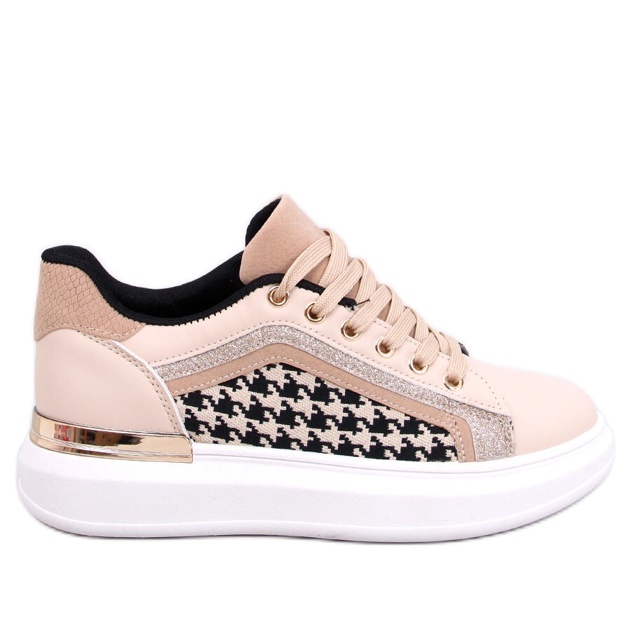 Inna marka Volyne Beige Damen-Sneaker mit Hahnentrittmuster